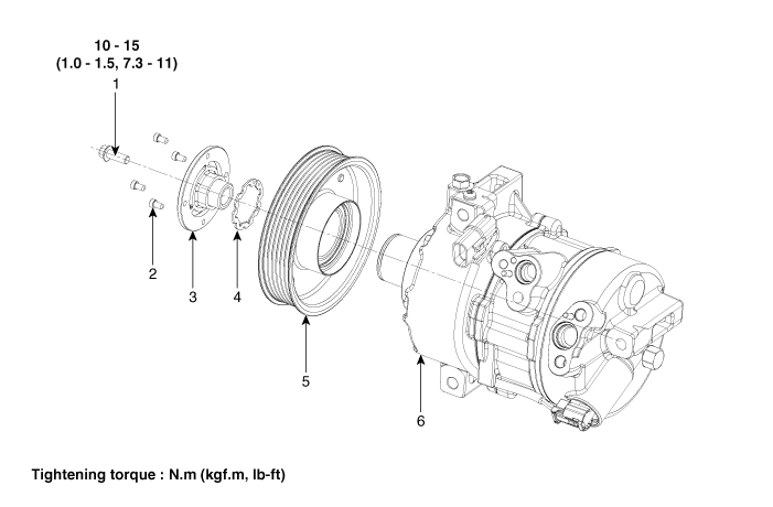 4. Snap Ring 5. Pulley 6. Compressor Assembly |