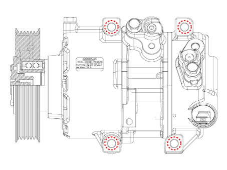 Remove the compressor assembly (A) after loosening the bolts.