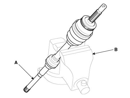 Fix the driveshaft (A) with a vice (B) as illustrated.