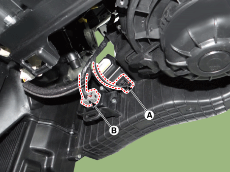 Remove the blower unit (B) from the heater unit (A) after loosening