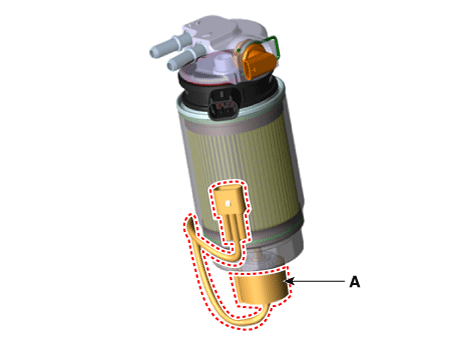 Remove the fuel filter assembly after loosening the mounting bolts (A).